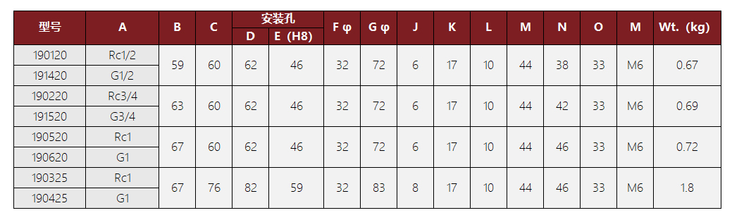 19系列單路旋轉(zhuǎn)接頭型號包括:190120、191420、190220、191520、190520、190620、190325、190425。